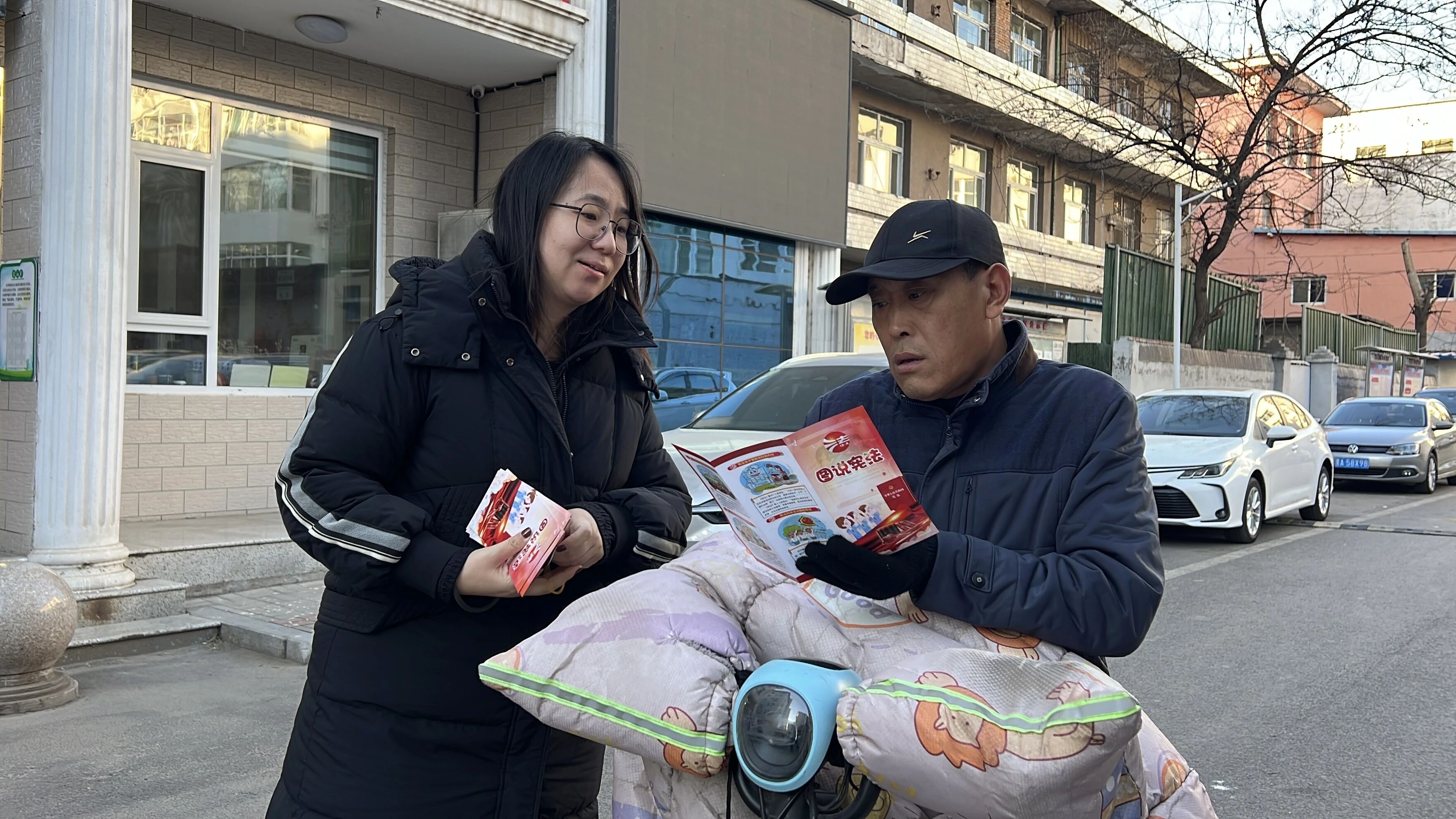 國(guó)浩太原律師郭犇與李思宸前往地礦社區(qū),通過發(fā)放憲法宣傳手冊(cè)和現(xiàn)場(chǎng)講解相結(jié)合的方式,深入宣傳憲法精神并提供法律幫助。