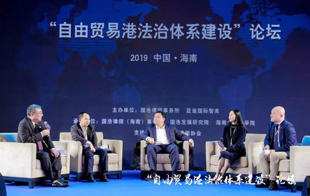 在第十三屆全國人民代表大會代表、江蘇省律師協會副會長、國浩律師事務所執行合伙人車捷的主持下,華東政法大學自貿區法律研究院常務副院長、教授賀小勇,國浩海南管理合伙人王龍奎,中國社會科學院投融資研究中心副主任、中國社會科學院金融研究所副研究員陳經偉,國浩海南合伙人專磊在“自由貿易港與完善法規體系”主題下發表了精彩演講。