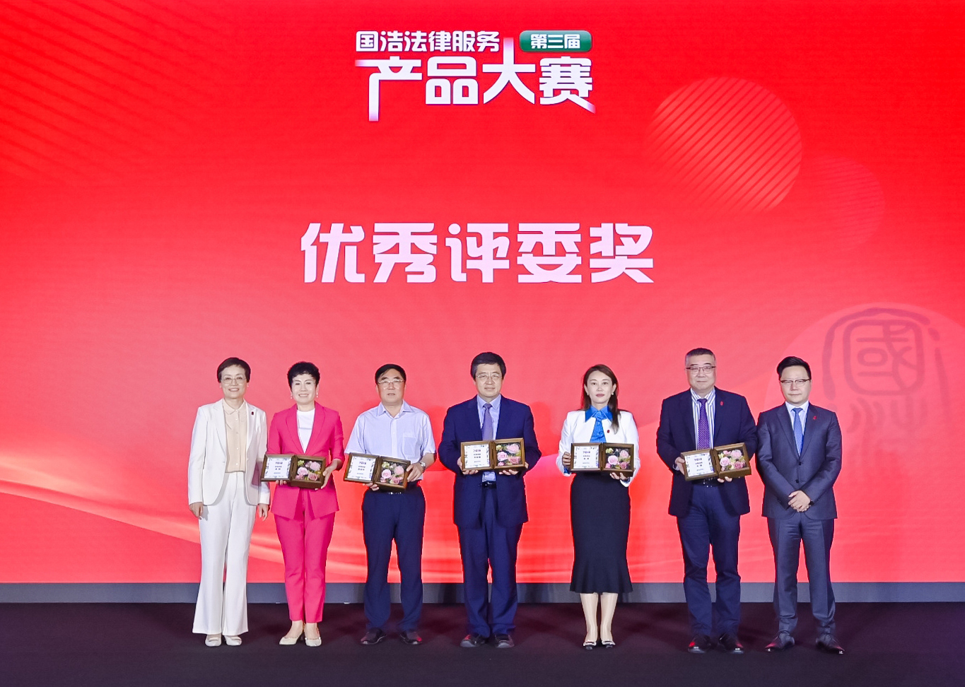 國浩律師事務所首席執行合伙人呂紅兵趕至頒獎晚宴,代表主辦方慶祝本次賽事圓滿結束。他祝賀所有獲獎者,“春風得意馬蹄疾”“映日荷花別樣紅”;祝福所有參與者,“一花獨放不是春”“百花盛開香滿園”;感謝各位評委,“一針見血真功夫,一語中的善啟發”;感恩國浩客戶,“問渠哪得清如許 ,為有源頭活水來”,客戶日益增長的法律服務需求正是國浩律師創新創造的不竭動力。呂紅兵律師表示,期待國浩的法律服務“產品”成為“商品”、做成“精品”、打造“爆品”,不光要“紙上談兵”,更要“橫掃天下”,不光領取賽場上的“獎杯”,更要贏得當事人的“口碑”。產品大賽持續辦,常賽常新,基業長青!