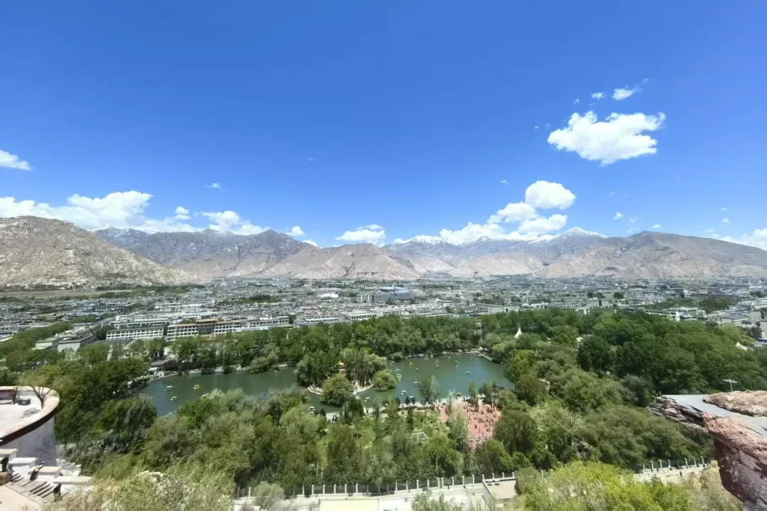 *布達拉宮腳下的宗角祿康公園及遠處的拉薩市