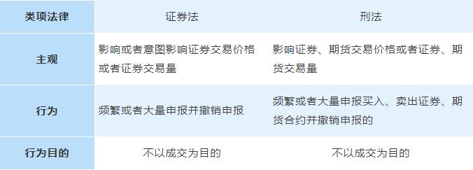 操縱證券、期貨市場的行為通常表現為利用資金優勢、信息優勢,虛假申報型操縱本質上是利用證券、期貨交易機制,通過墊單、或者大額申報等方式,向市場傳遞特定信息,從而幌騙其他交易者實施交易行為,在此過程中,行為人一般通過反向交易實現獲利,或者謀取其他利益。本罪屬于法定犯,即需要行政違法在先,刑法二次否定評價,但從相關行政法規而言,刑事與行政法規就虛假申報的界定存在一定的差異。二者均要求頻繁或者大量申報并撤銷申報,同時以不成交為目的。但證券法第五十五條規定“影響或者意圖影響證券交易價格或者證券交易量”,而刑法第一百八十二條要求“影響證券、期貨交易價格或者證券、期貨交易量”,換言之,根據刑罰法定原則,對于“意圖影響”的情形不屬于刑法規制的范圍,申言之,刑事審判中應就“影響價量”進行獨立評價。