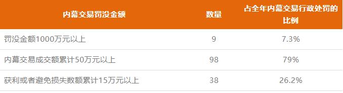 從涉案金額和涉案人員關系看,惡性內幕交易仍然多發,全年共9起案件罰沒總金額超過1000萬元,單起案件罰沒金額最高達36億余元,近70%的案件達到刑事立案標準;有十余起案件同時對法定內幕信息知情人及與其聯絡接觸的內幕交易行為人作出處罰,其中不乏涉案人數多達12人次的“窩案”。在高層多次提出“零容忍”的監管態勢下,內幕交易行為人依然鋌而走險,通過分散賬戶、分散資金的方式規避監管,又通過集中買入、集中賣出的方式擾亂證券市場秩序,此類惡性內幕交易行為是監管部門重點關注和打擊的對象。