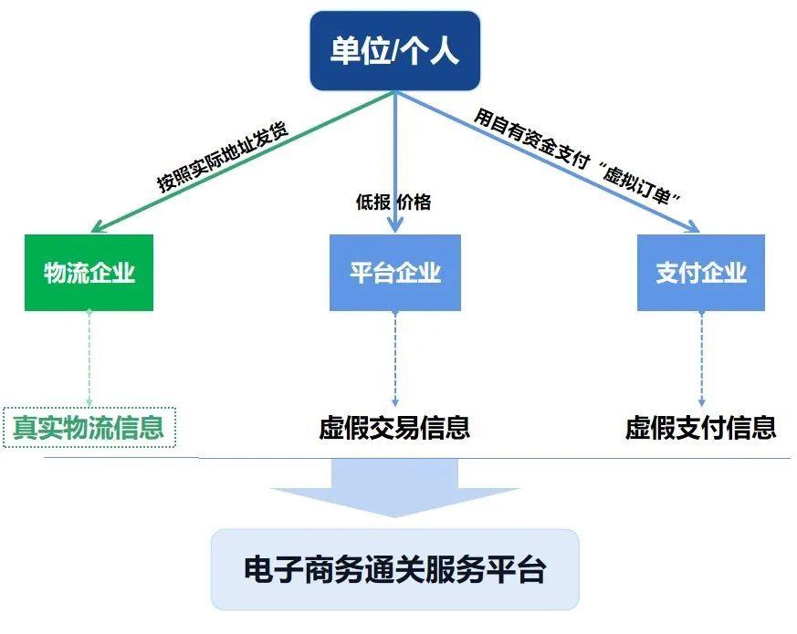 跨境電商運(yùn)營過程中低報價格,主要是基于跨境電商平臺上生成的真實(shí)有效的訂單來進(jìn)行價格造假,實(shí)現(xiàn)以低報價格手段逃避繳納稅款,行為模式如下圖所示: