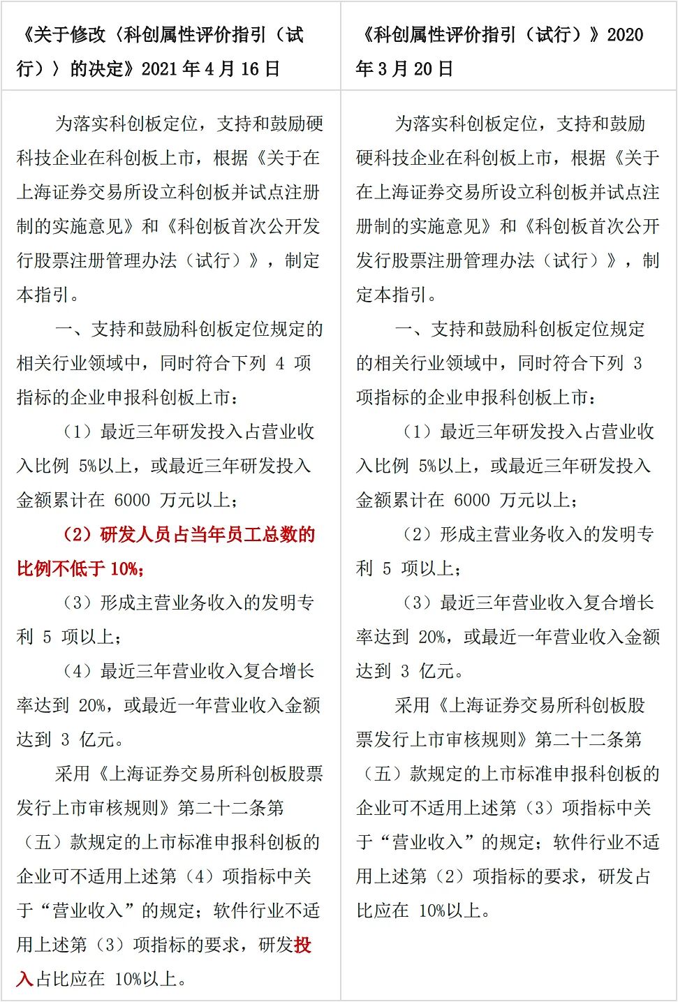 增加了研發人員占比的要求,系根據新評價指引進行了相應調整,具體評價詳見上文。