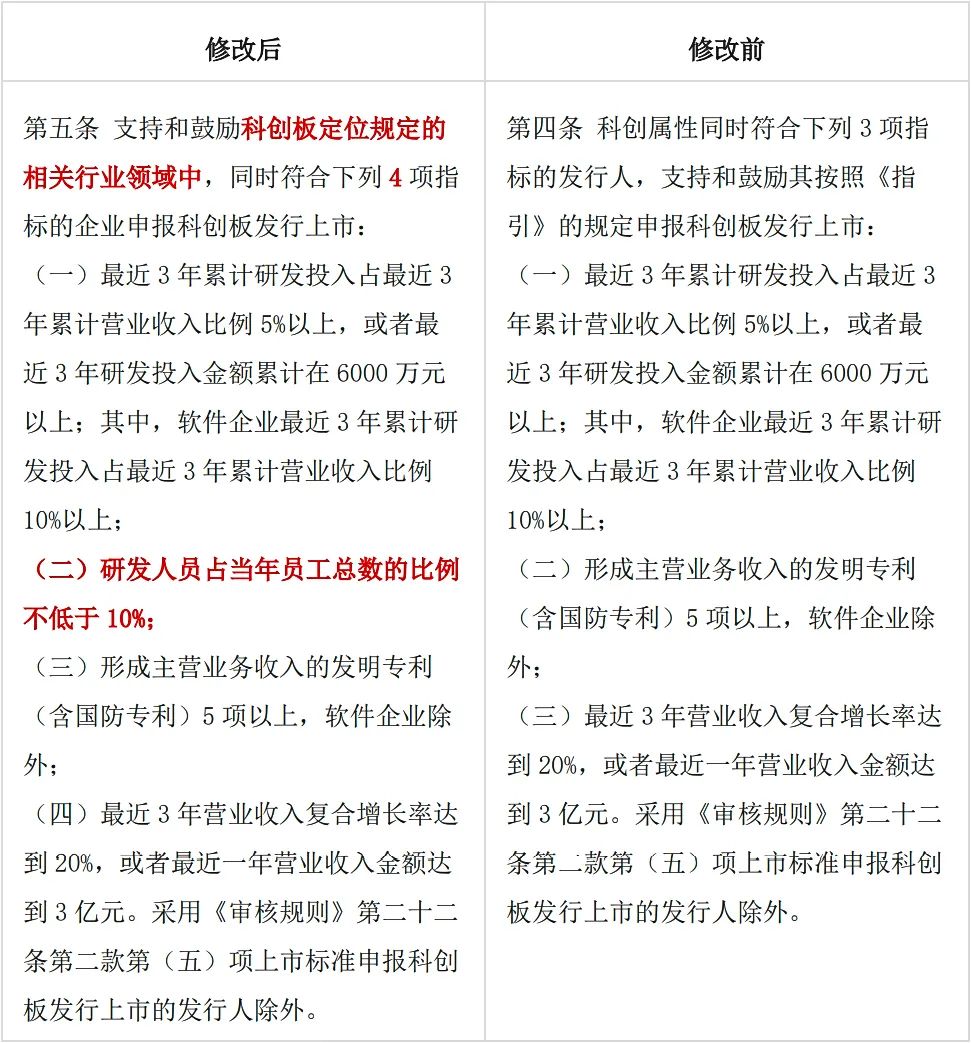 (一) 新增研發人員占比超過10%的常規指標,修改后將形成4+5的科創屬性評價指標。