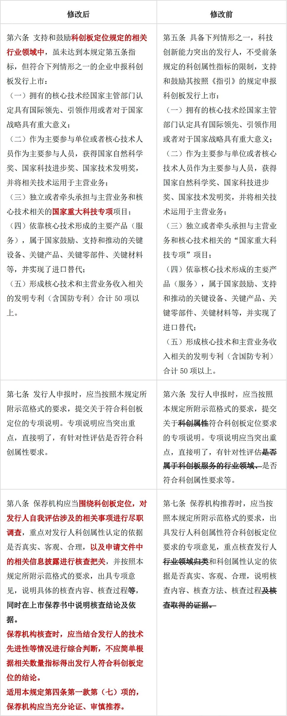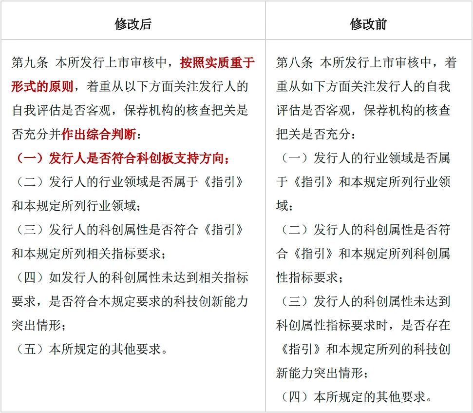 評論:貫徹此次評價指引修訂的精神,強調實質重于形式的審查原則,并增加要求科創板擬IPO企業及其保薦人對發展方向是否符合科創板支持方向進行重點評估和說明。