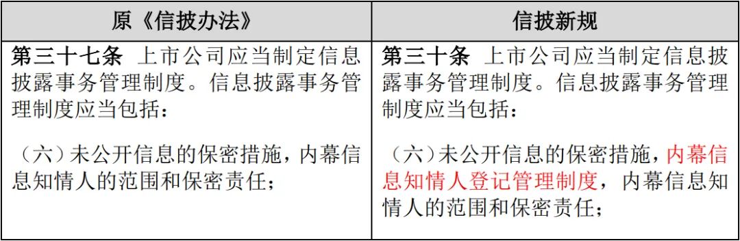 信披新規第30條進一步完善了上市公司信息披露事務管理制度,新增“內幕信息知情人登記管理制度”。在近期證監會、證監局及滬深交易所的監管案例中,頻繁出現相關主體因內幕信息知情人登記管理不規范而被采取行政監管措施或自律監管措施的情形,建議上市公司參考今年2月生效的《關于上市公司內幕信息知情人登記管理制度的規定》及時更新、完善相關制度。