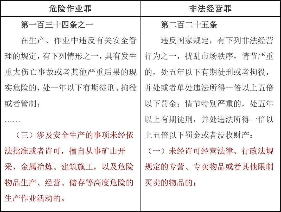三、危險作業(yè)罪與非法經(jīng)營罪的適用沖突