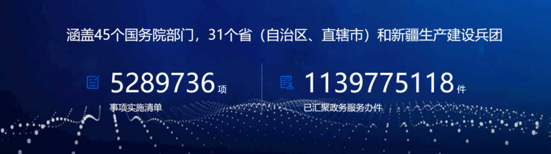 截至2021年6月13日,中國政府網顯示,國家政務服務平臺已直通國務院45個部門、31個(省、自治區、直轄市)和新疆建設兵團;已完成合計528.97萬項的實施清單,11.4億件政務服務辦件。