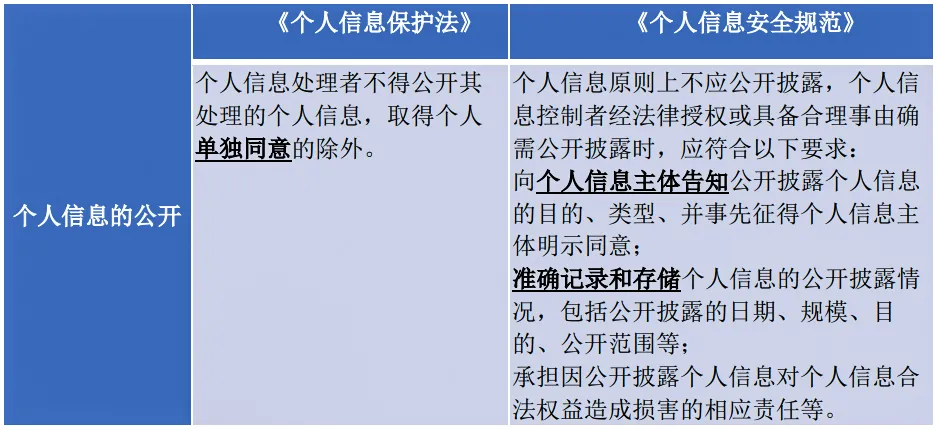 個人信息的公開指向社會或不特定人群發布信息的行為?!秱€人信息保護法》《個人信息安全規范》均規定了個人信息公開的規則,但《個人信息保護法》的規定較為原則,在落實相關規則時可以參考《個人信息安全規范》的規定。