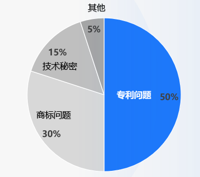根據統計,在知識產權相關的問詢回復中,排名前三的是專利權、商標權、技術秘密相關問題,分別占50%、30%、15%,其他問題如軟件著作權、集成電路布圖設計等僅占5%。可以看出,專利權與技術秘密,是科技創新成果的基本保護手段,專利權與技術秘密相關問題在知識產權問詢問題中占半數以上。