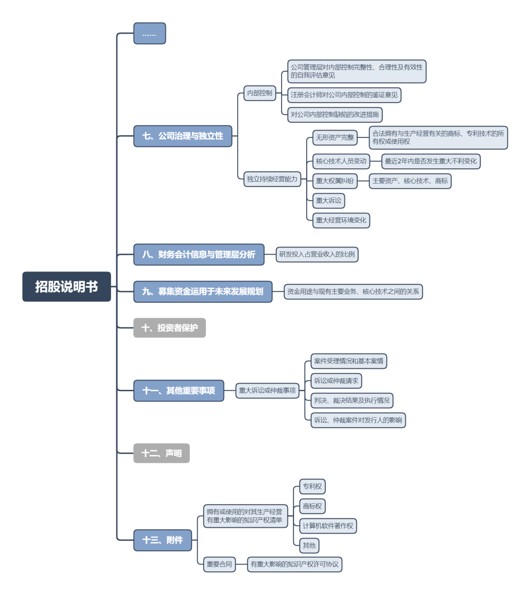 其中,招股說明書是最主要的信息披露文件,涉及大量的IP相關信息披露要求,主要如下圖所示。