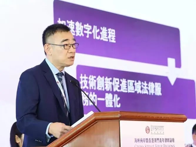 開(kāi)幕式上,香港特別行政區(qū)行政長(zhǎng)官李家超發(fā)表實(shí)時(shí)網(wǎng)絡(luò)講話(huà),祝賀論壇成功舉辦的同時(shí),提出了律師應(yīng)積極投身于兩岸四地經(jīng)濟(jì)建設(shè)的要求。香港律師會(huì)會(huì)長(zhǎng)湯文龍、香港特別行政區(qū)律政司司長(zhǎng)林定國(guó)、中華全國(guó)律師協(xié)會(huì)會(huì)長(zhǎng)高子程、臺(tái)灣社團(tuán)法人桃園律師公會(huì)理事長(zhǎng)張百欣、澳門(mén)律師公會(huì)理事會(huì)秘書(shū)長(zhǎng)潘愛(ài)儀出席活動(dòng)并致辭。騰訊集團(tuán)副總裁暨騰訊研究院院長(zhǎng)司曉發(fā)表主題演說(shuō)《人工智能為海峽兩岸暨香港澳門(mén)經(jīng)濟(jì)發(fā)展(新質(zhì)生產(chǎn)力)帶來(lái)的機(jī)遇》。