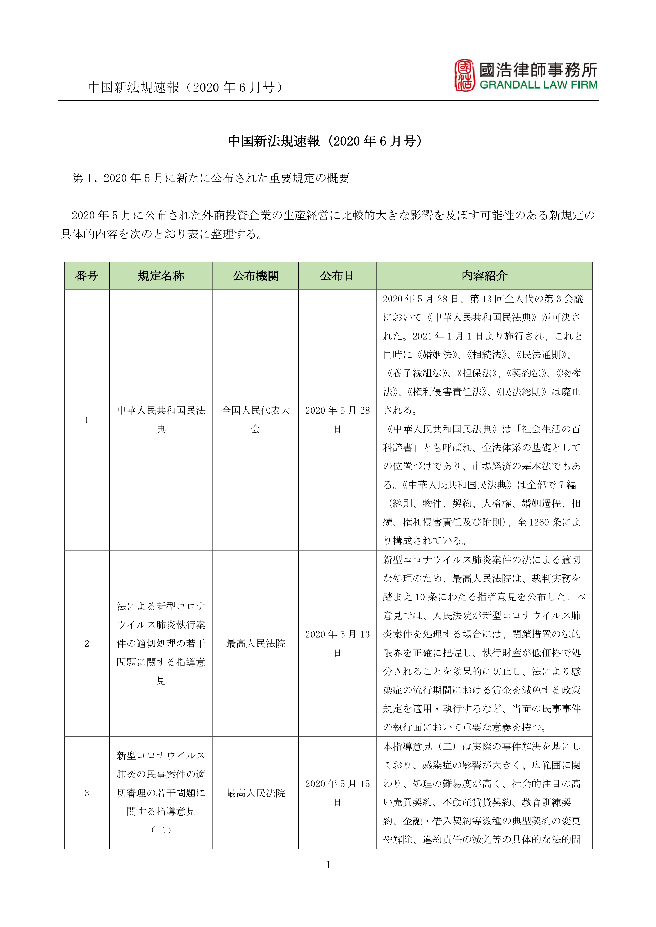 中國新法規速報(2020年6月號)
