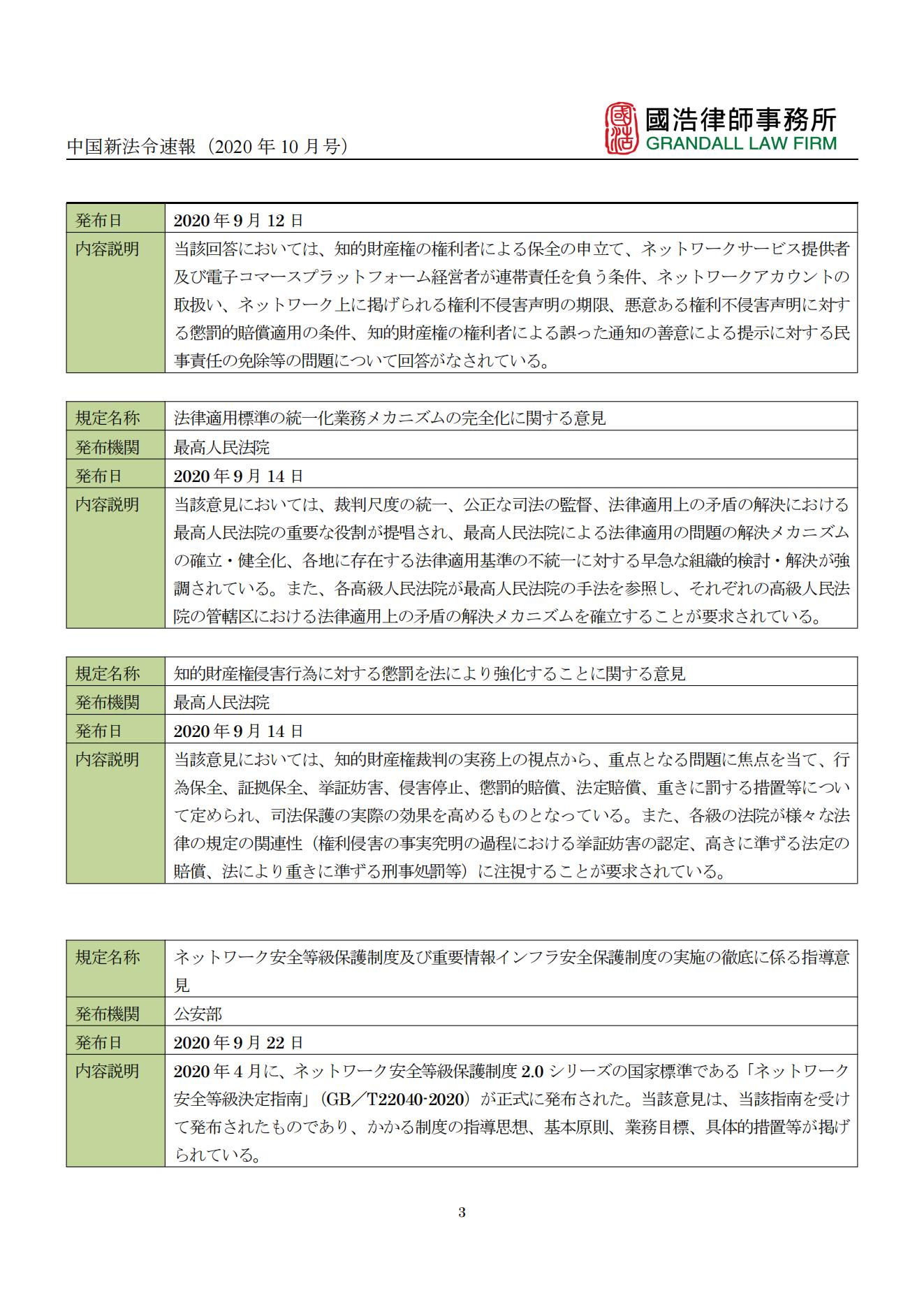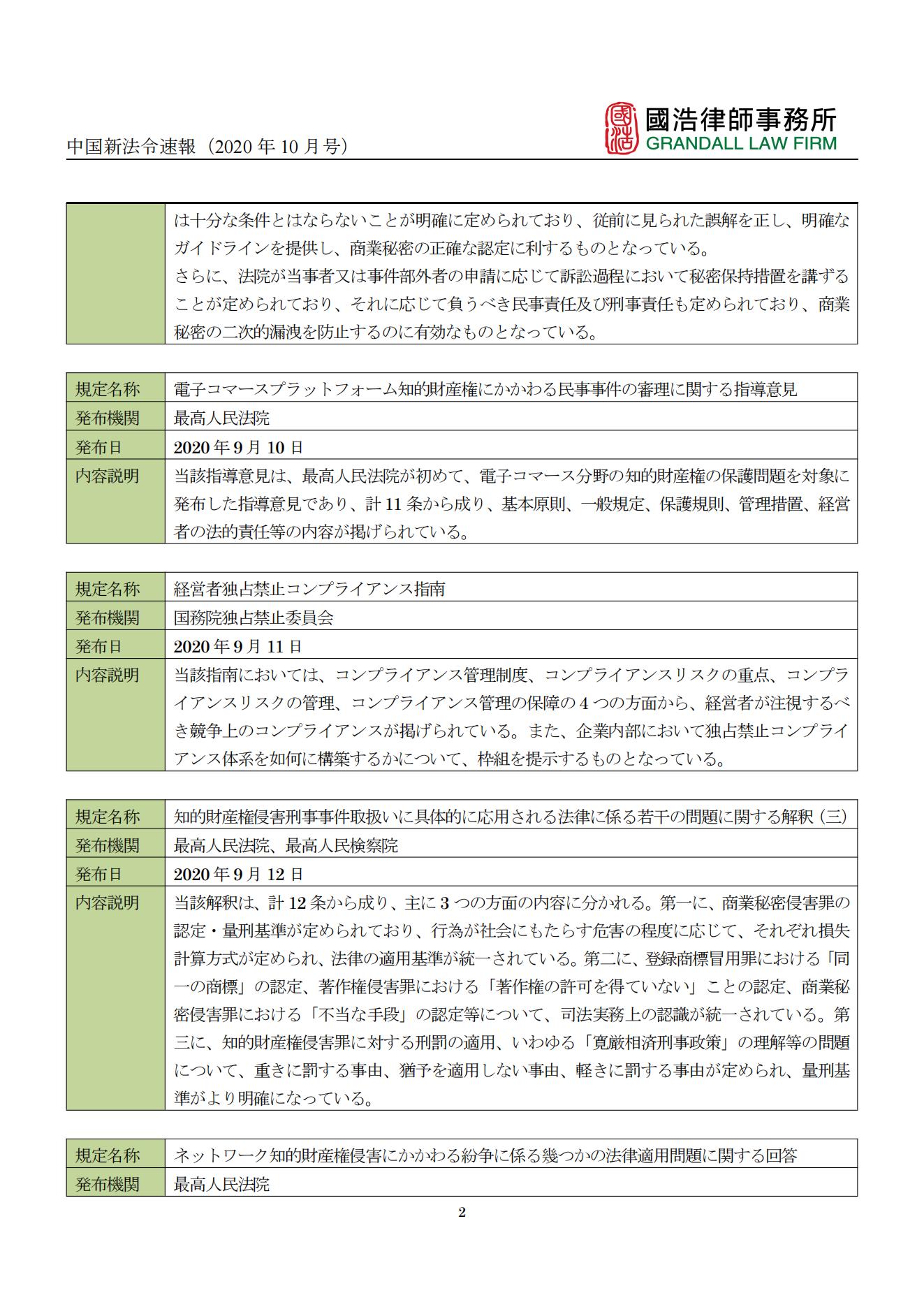 中國新法令速報(2020年10月號)