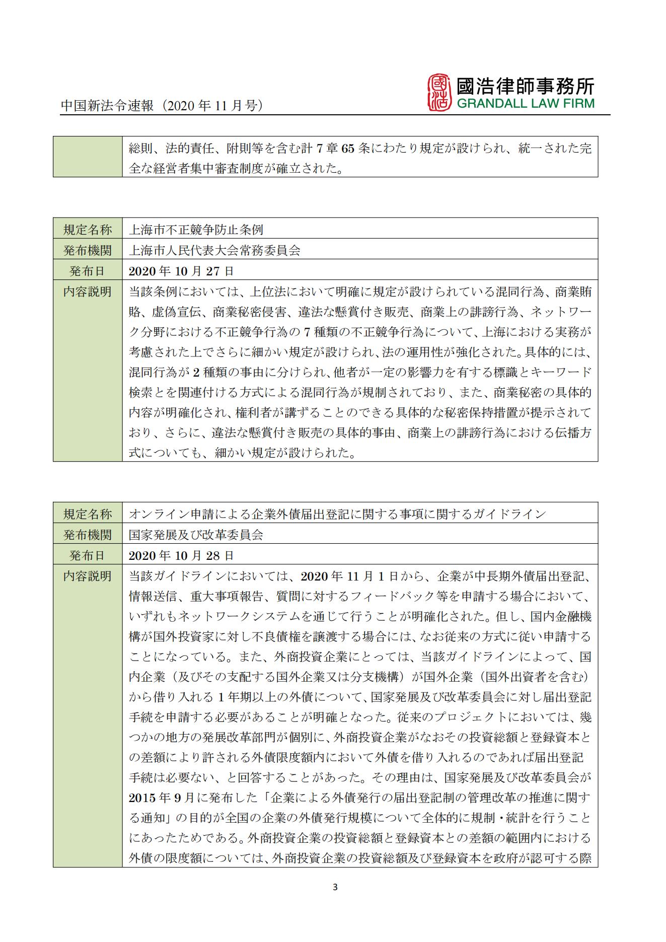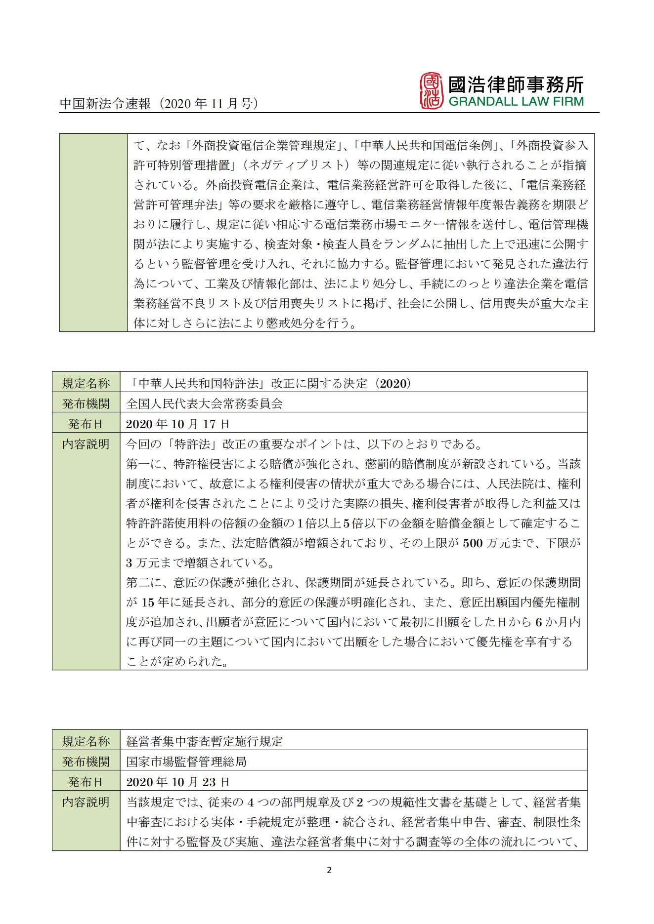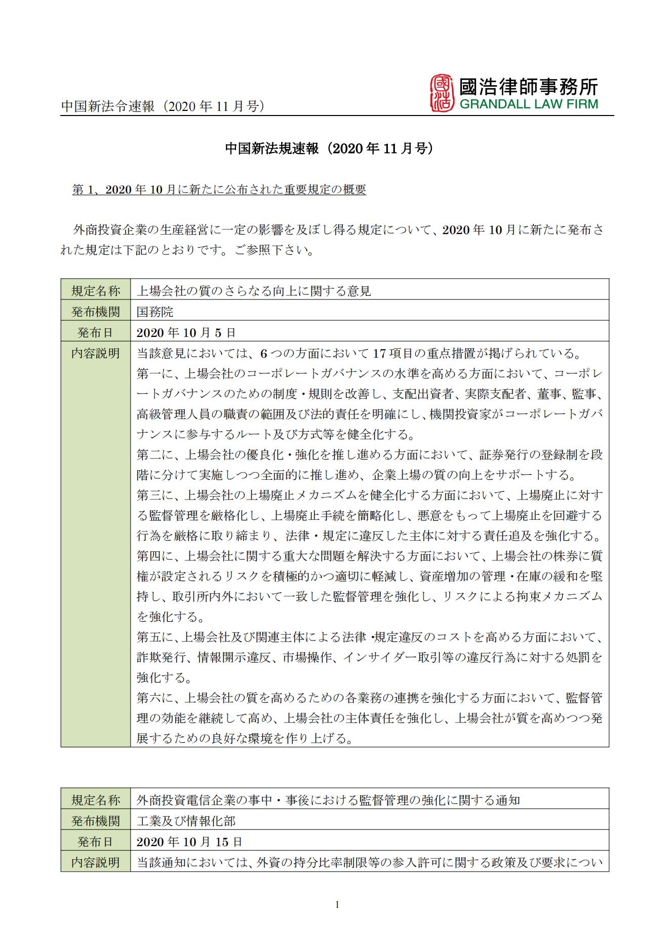中國新法令速報(bào)(2020年11月號(hào))