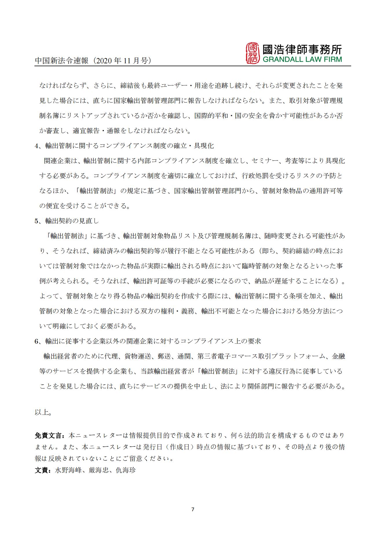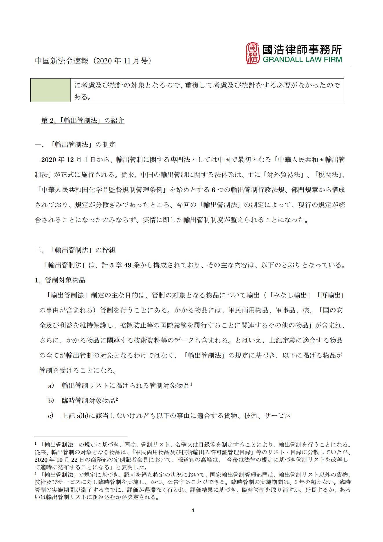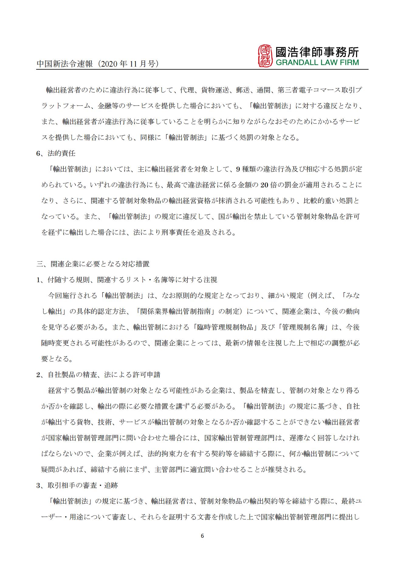 中國新法令速報(bào)(2020年11月號(hào))
