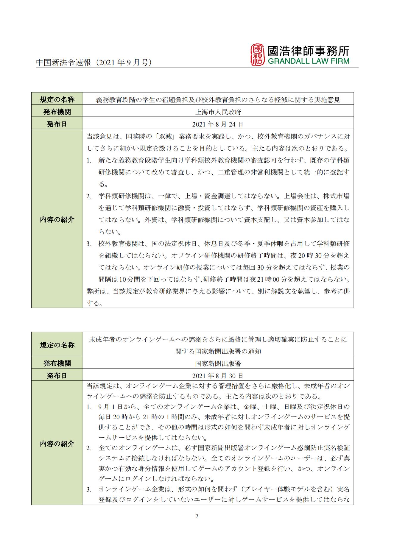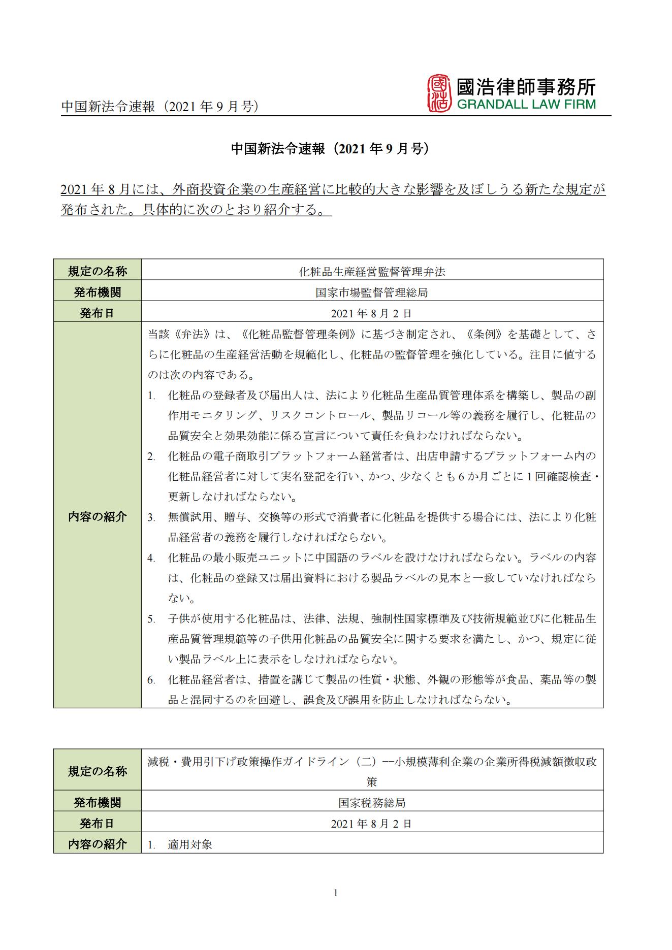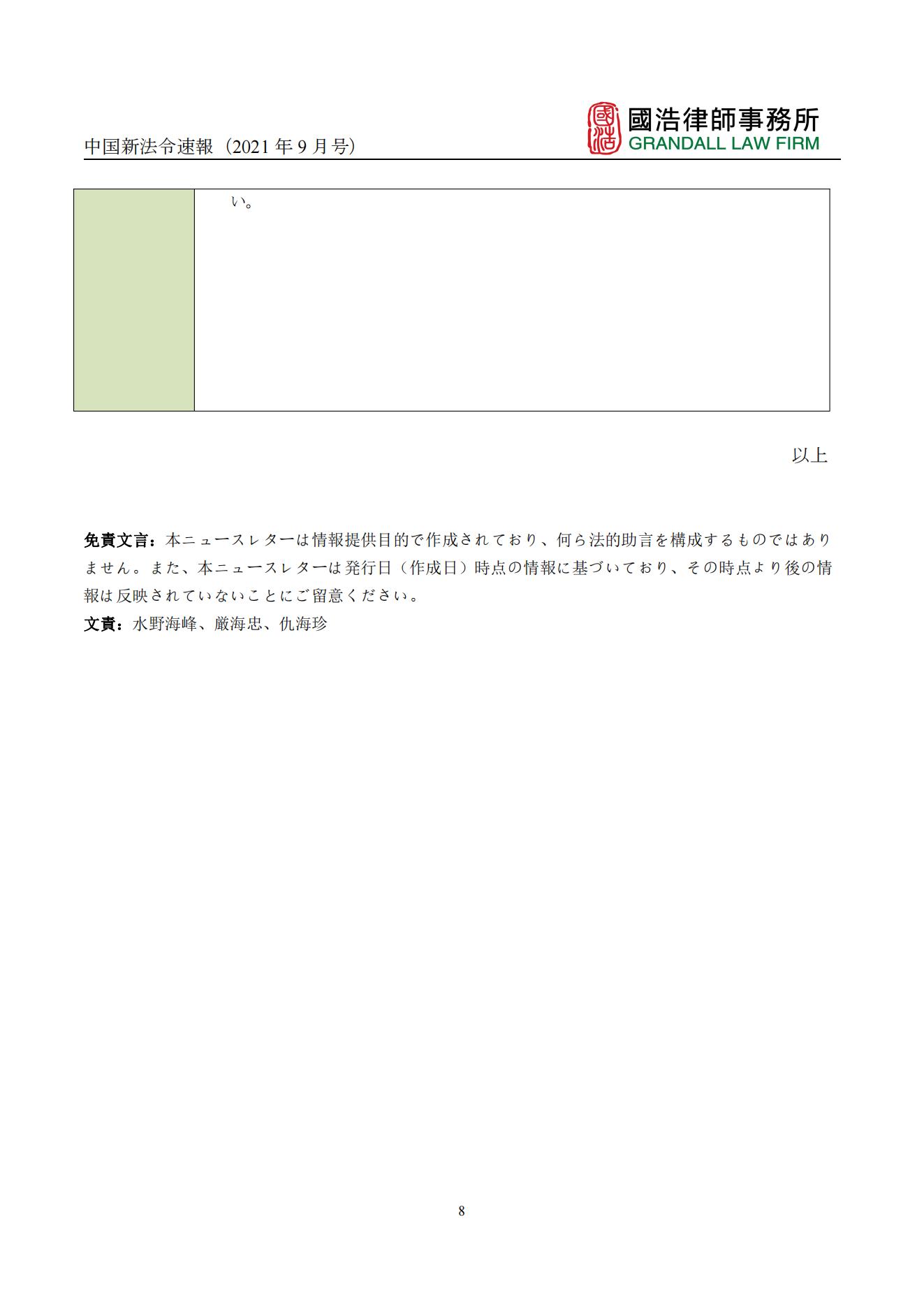 中國新法令速報(2021年9月號)