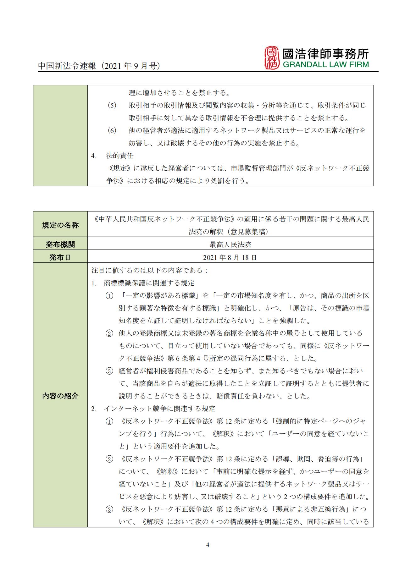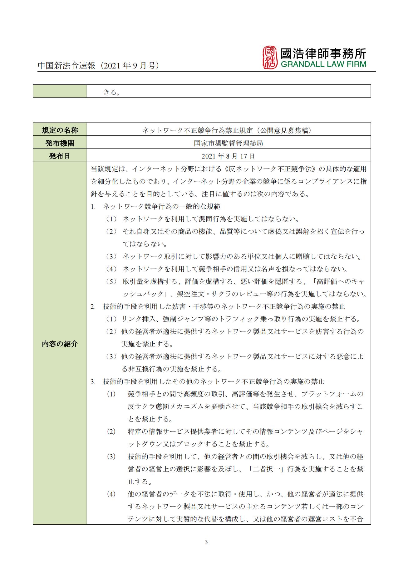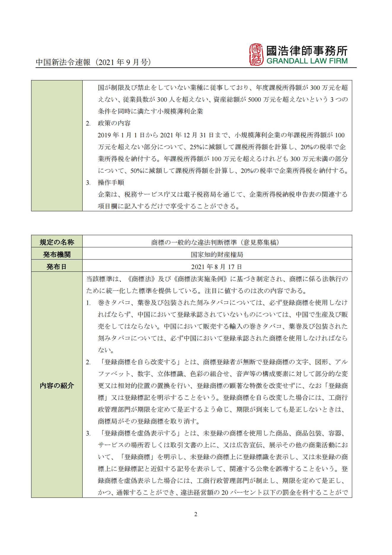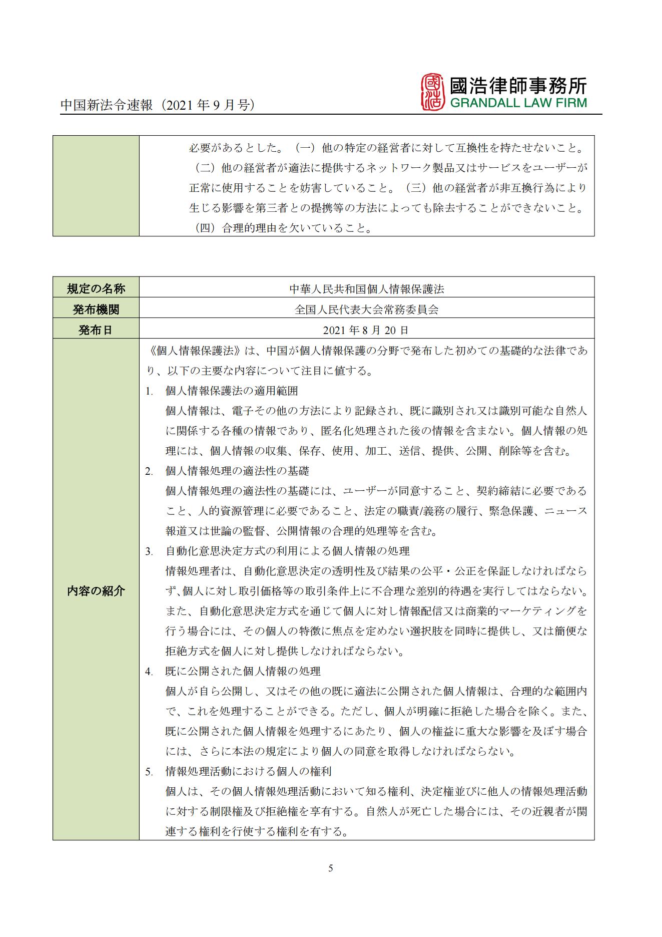 中國新法令速報(2021年9月號)