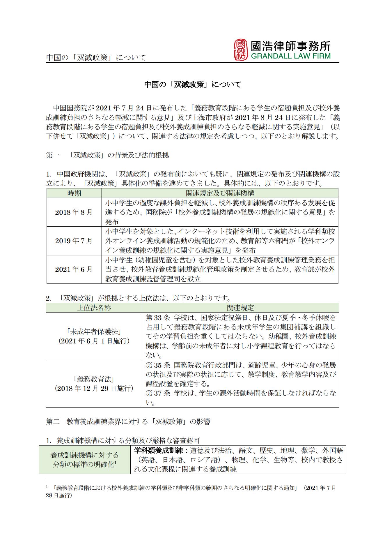 中國の「雙減政策」について