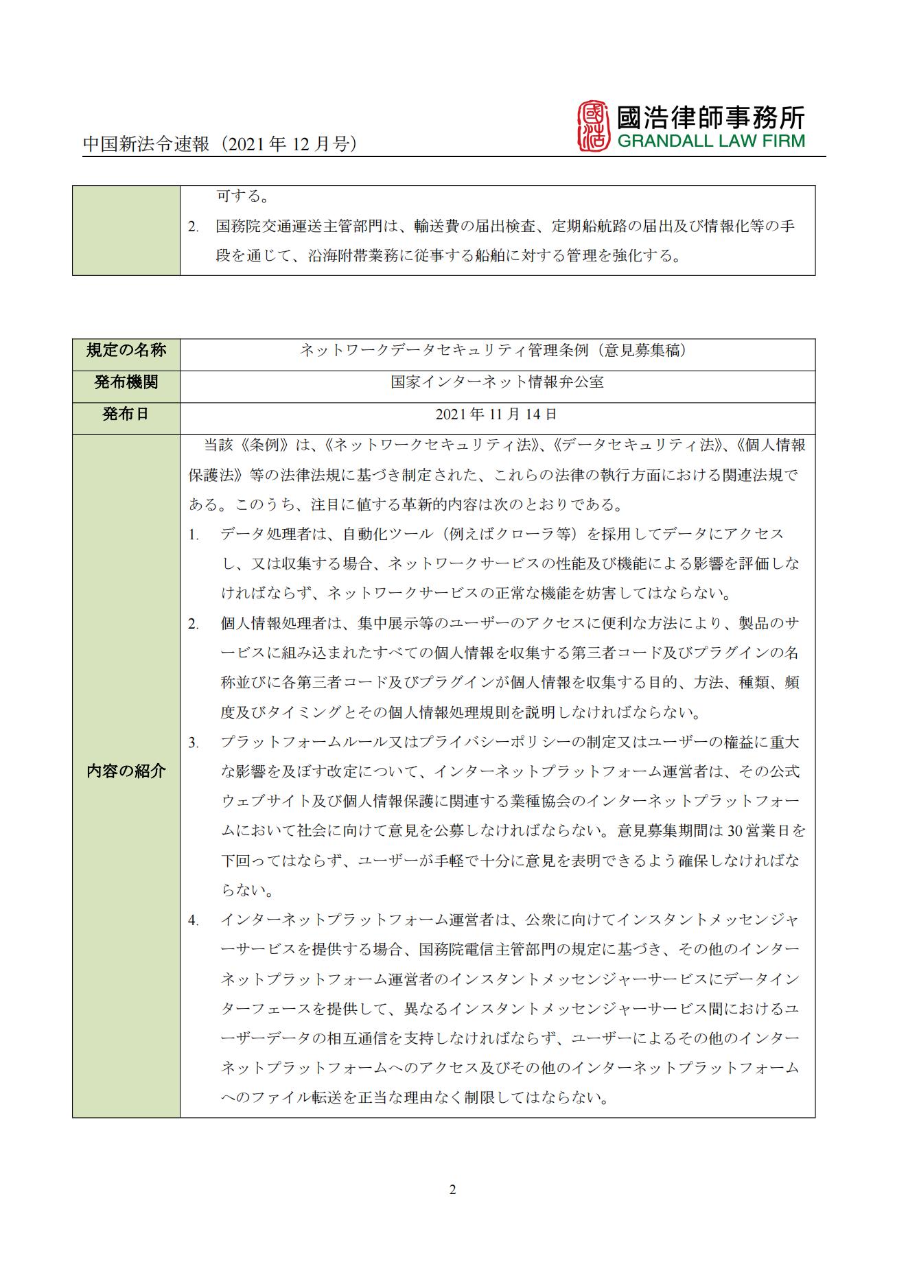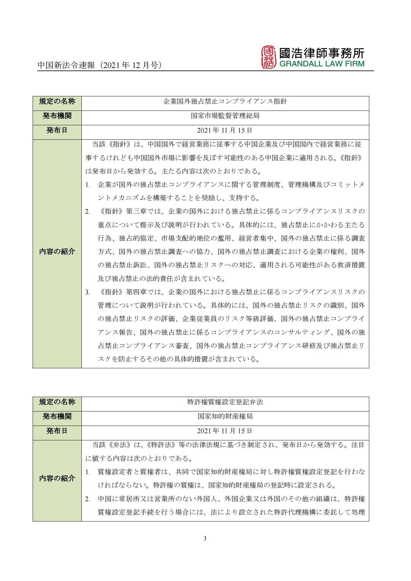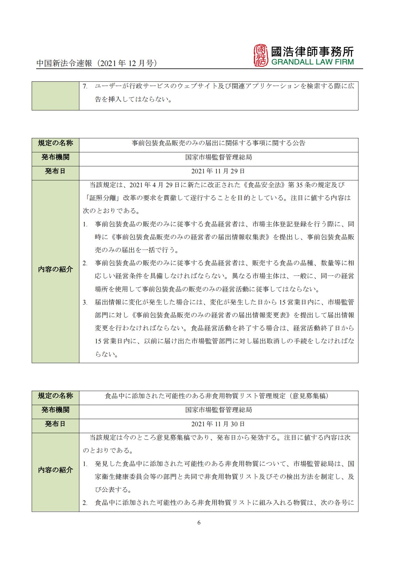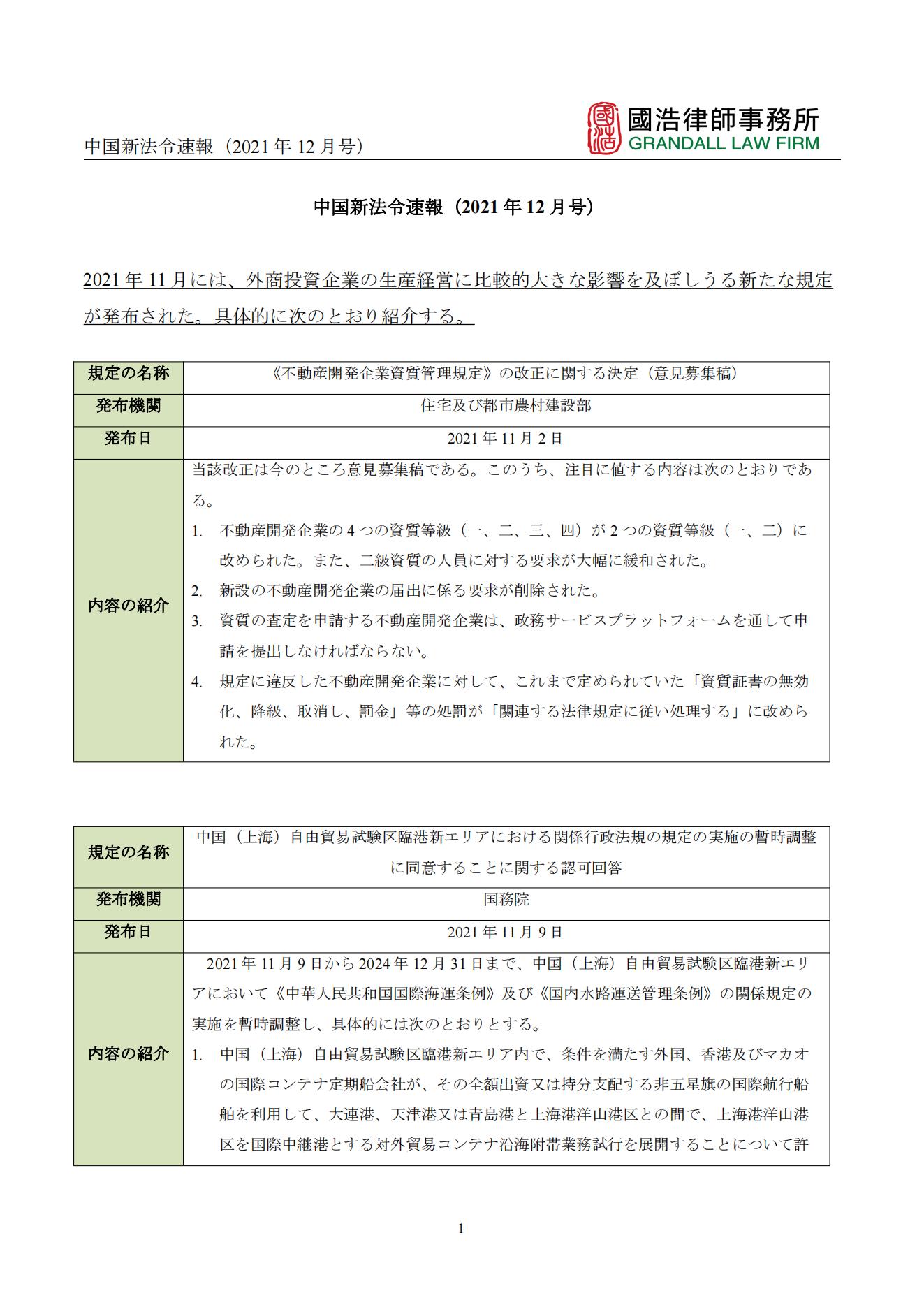 中國新法令速報(2021年12月號)
