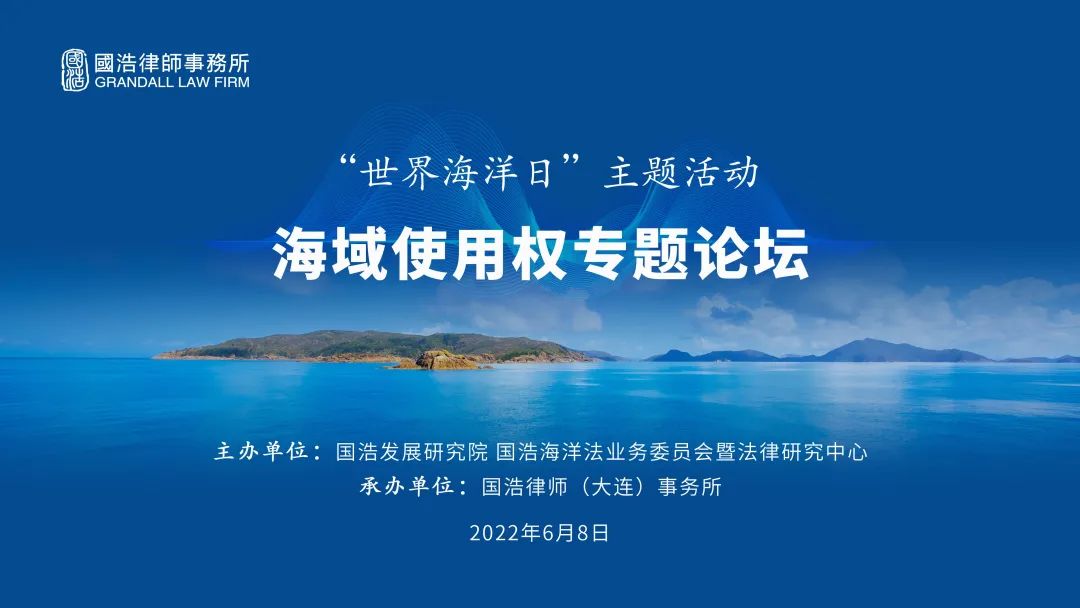 6月8日是第十四個世界海洋日和第十五個全國海洋宣傳日,由國浩發展研究院、國浩海洋法業務委員會暨法律研究中心主辦,國浩律師(大連)事務所承辦的“世界海洋日”主題活動—海域使用權專題論壇以線上線下相結合的形式在大連成功召開。