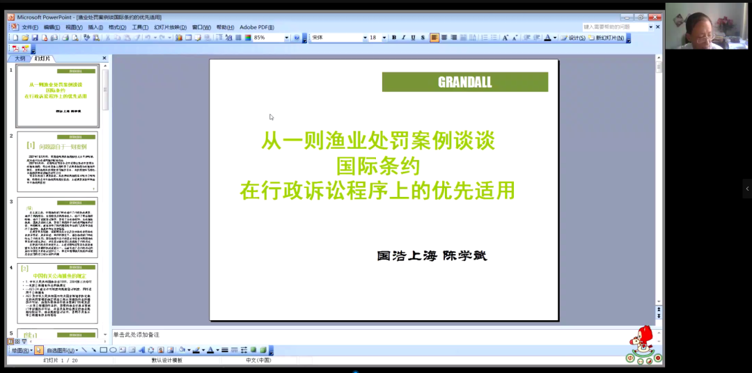 陳學斌律師從所代理的一則漁業處罰案例,談了談國際條約在行政訴訟程序上的優先適用。他分別從實體法和程序法的角度闡述了國際條約優先適用的法律規則和適用情形,并重點介紹了境外證據的公約規定以及在行政訴訟程序上的優先適用問題。