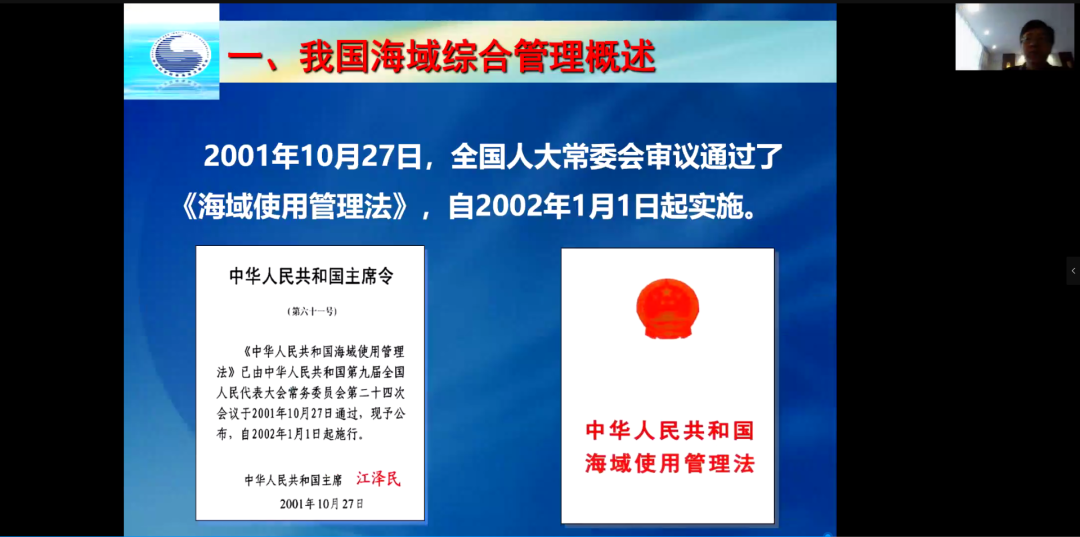 索安寧教授分享了新形式下我國海域綜合管理制度體系,詳細闡釋了我國海域權屬管理制度,重點介紹了海域價值評估方法、海域有償使用制度和海域動態監測制度,提出了應從區劃統籌、規劃引導、計劃調節、科學論證、嚴格審批等方面,進一步強化海域使用權監管,以提升海域使用的效率。