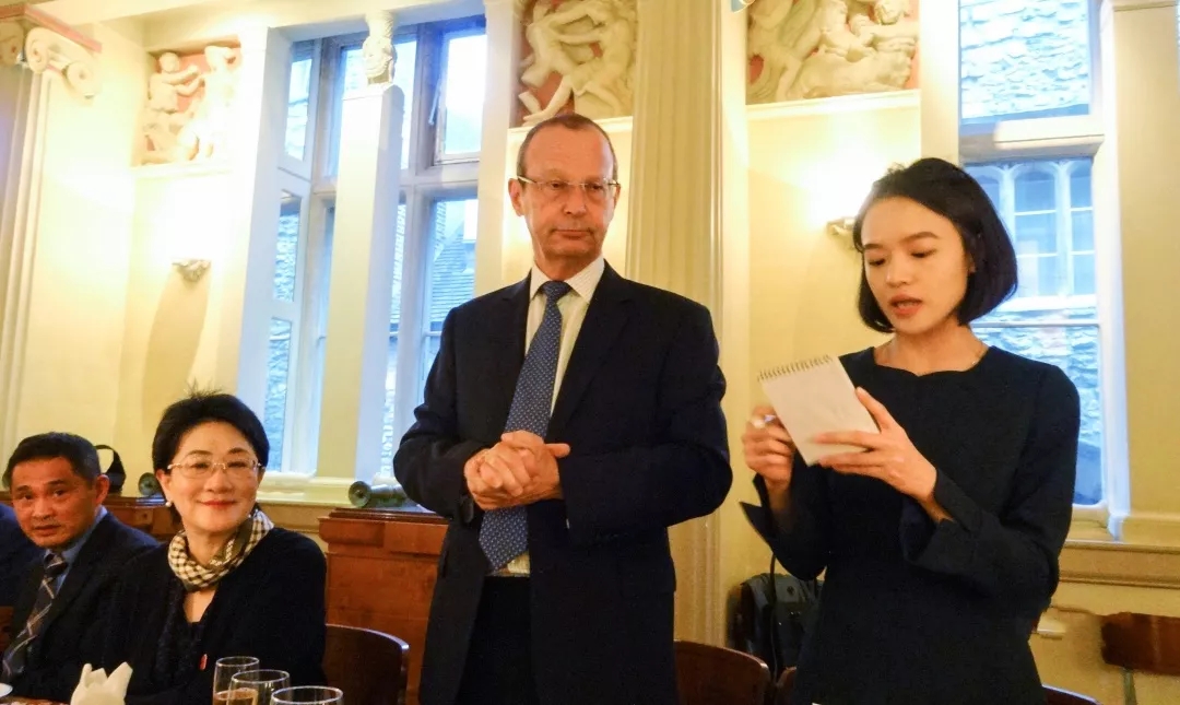 如果說在4月29日歡迎晚宴上,理查德?威爾森勛爵演講中明晰的“領導力”構成的三要素,幫助我們對課程作進一步的理性思考,那么,到了5月2日傍晚,離開前的結業季,在感受霍金曾經任職的學院岡維爾與凱斯學院(Gonville &Caius College)領取結業證書這樣的榮耀之余,蓋伊?勒溫史密斯院士在送別晚宴上用英語柔柔念出了徐志摩的詩作為致別詞,那洋溢真摯情感的美妙吟誦,則確實深深地打動了我們的心——