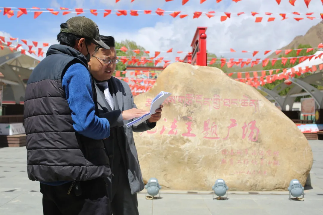 張超律師與桑珠孜區司法局同事商議法治宣傳事宜。