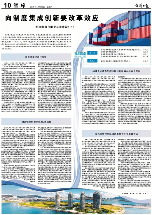 張湧:對海南來說,制度安排必須綜合集成,才能產生更大的“化學反應”,發揮更好的改革效應。