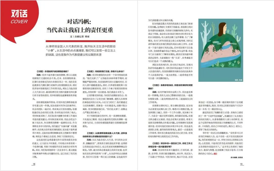 馮帆:自從當選全國人大代表,學習的機會更多、接觸面更廣、獲取各方面信息也更豐富,這些都讓我快速適應和成長,也讓我更深刻理解律師這份職業。