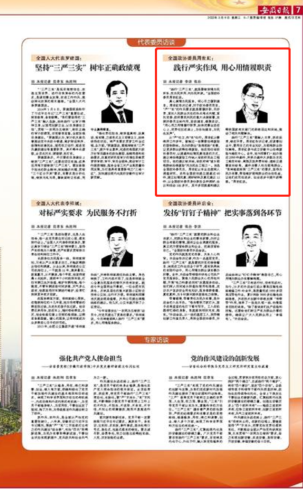 安徽日報 | 全國政協委員周世虹:踐行嚴實作風 用心用情履職責