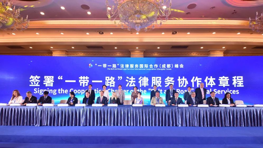 2017年7月,國浩成都在市司法局、市律協指導下,承辦了“一帶一路”法律服務國際合作(成都)峰會。來自“一帶一路”沿線各國的33家律師事務所在成都共同簽署了《“一帶一路”法律服務協作體章程》,建立常態化合作機制,構建起“一帶一路”法律服務協作體。