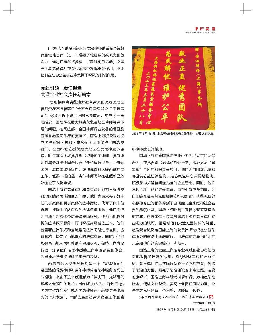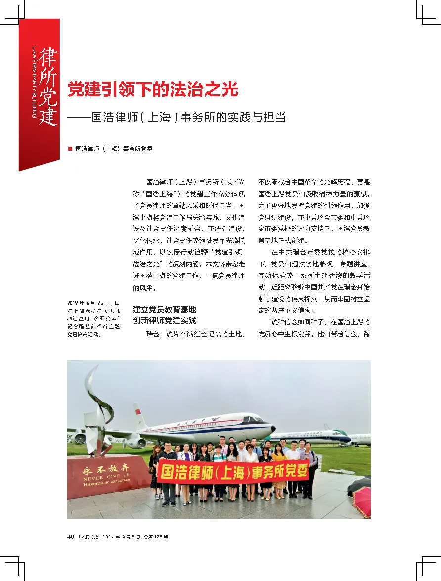 在中華人民共和國75周年華誕來臨之際,讓我們通過《人民法治》第185期特約稿件,共同走進國浩上海的黨建工作,一窺黨員律師的風采。