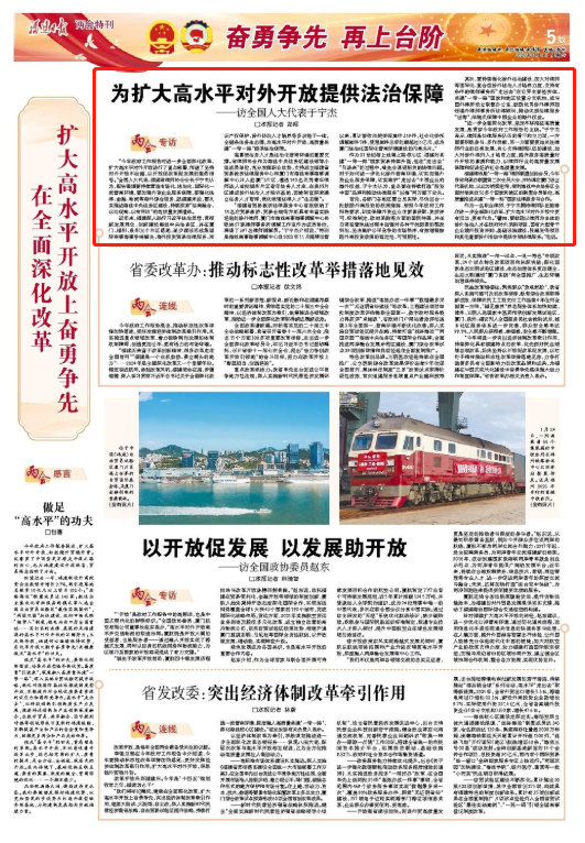 在全面深化改革的時代浪潮中,擴大高水平對外開放成為經濟發展的關鍵動力。第十四屆全國人大代表、國浩執行合伙人于寧杰立足福建實踐,就如何優化涉外營商環境、維護企業海外權益等提出了切實可行的建議。讓我們跟隨《福建日報》的采訪,聆聽他的精彩建言。