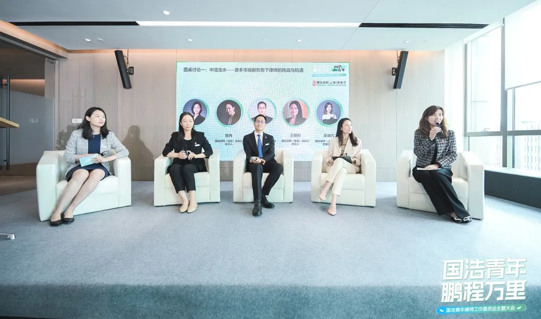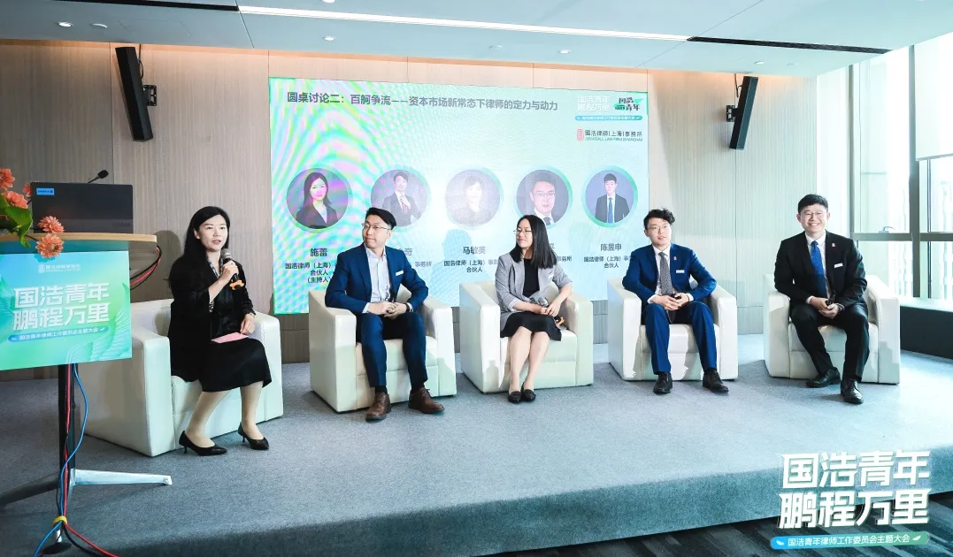 第一場圓桌討論由國浩上海合伙人耿晨主持。國浩北京合伙人張冉、國浩杭州合伙人楊釗、國浩香港合伙人王倩彤及國浩上海管理合伙人承婧艽,圍繞“中流擊水——資本市場新形勢下律師的挑戰與機遇”這一主題,結合近期境內外資本市場的一系列政策變化,就青年律師如何應對挑戰、抓住機遇進行了探討。嘉賓們建議青年律師,要堅持專業主義,打好基礎練好內功;要堅持長期主義,日積月累精進業務;要培養商業思維,放下身段積極輸出;要培養風控意識,擁抱監管勤勉盡責。