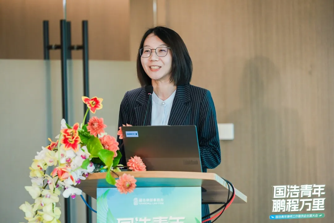 國浩青工委副主任、國浩天津合伙人梁爽代表國浩青工委向與會同仁作年度工作報告,她感謝每一位青年律師的無私付出和不懈努力。青年律師是國浩的未來,是行業的中堅力量,更是法治建設的生力軍。在報告中,梁爽律師介紹了過往一年國浩青工委組織開展的活動,“鯤鵬計劃”“國浩25周年慶·2023籃球賽”等活動的成功舉辦,不僅增強了國浩青年律師的業務能力,同時也加深了各辦公室之間的理解與合作;不僅增強了青年律師的凝聚力和向心力,也提升了國浩的社會影響力。