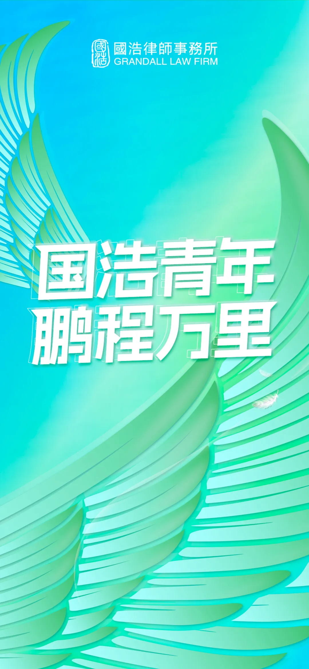 “國浩青年”標識以青綠色作為主基調,體現青年人蓬勃朝氣的同時,呼應國浩誕生之初即有的品牌色-綠色;以“翅膀”元素融入標識,寓意國浩青年鵬程萬里,期待國浩的青年人們能夠乘著騰飛的翅膀,去探尋更廣闊的天地。