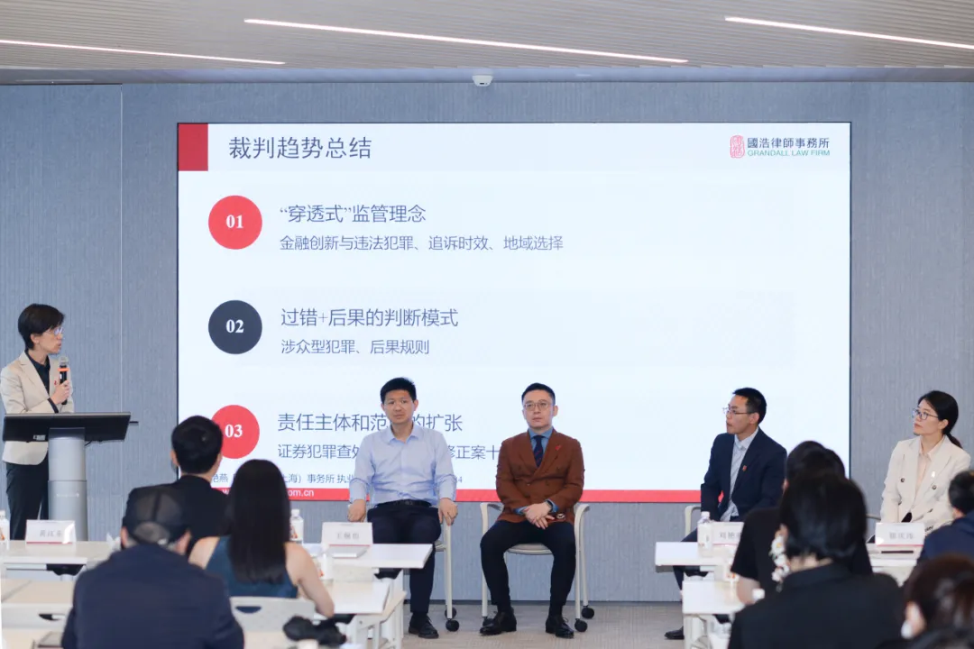 隨后的圓桌交流環節由上海市律師協會基金專業委員會副主任、國浩上海合伙人王婉怡主持。各位主講律師共同圍繞監管趨勢、合規要求、民事與刑事責任等核心問題展開探討。