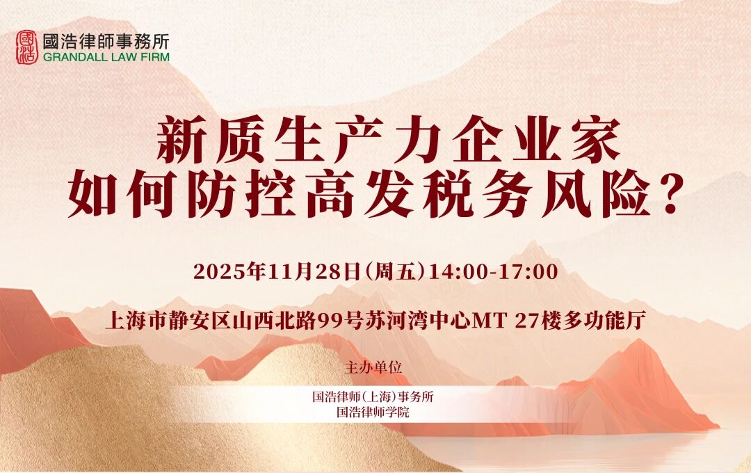 2025年11月28日,由國浩律師(上海)事務(wù)所、國浩律師學(xué)院聯(lián)合主辦,國浩上海合伙人張?zhí)m田主講的《新質(zhì)生產(chǎn)力企業(yè)家如何防控高發(fā)稅務(wù)風(fēng)險》專題講座成功舉辦。