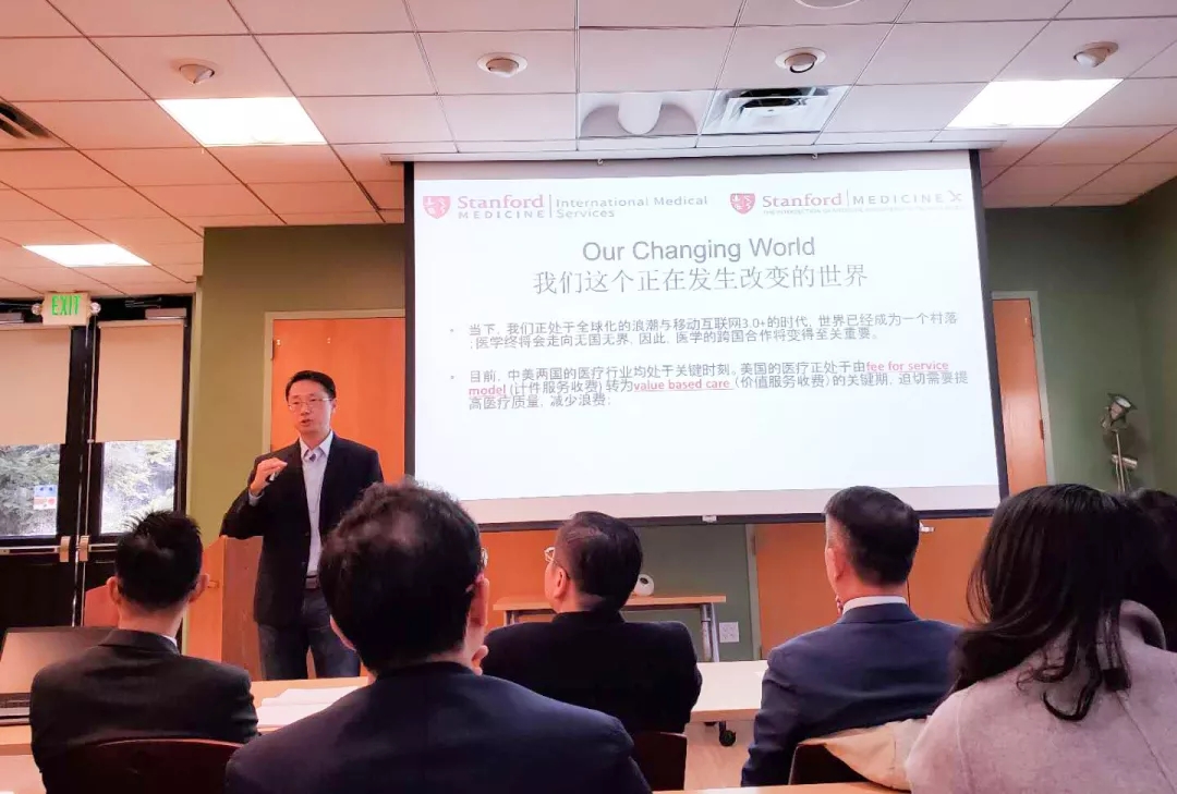 美國華人執業醫師協會會長、斯坦福大學國際醫學部的負責人錢湘教授為我們開啟了第二天的斯坦福培訓之旅,他帶來的課程是《中美醫療健康產業分析-跨境醫療投資機遇與挑戰》。錢湘教授溫文爾雅,將目前醫療行業的革新進步和世界醫學的變革趨勢向我們娓娓道來。他認為目前美國的醫療正處于fee for service mode 轉為value based care 的關鍵期,醫學的跨國合作將變得至關重要。對于在醫學機構、企業之間的跨國合作過程中,通過什么方式進行合作、合作范圍如何取舍、如何從企業藥物研發的性質判斷合作價值等問題,錢湘教授給出了明確的答復和前沿信息。錢湘教授不僅在醫學教育和臨床領域有著豐富的經驗,他同時還成立了一家創投公司,對于醫學領域的創新藥物和科技進行投資,展示了斯坦福大學理論聯系實際、開拓創新的精神,讓大家打心眼里佩服。
