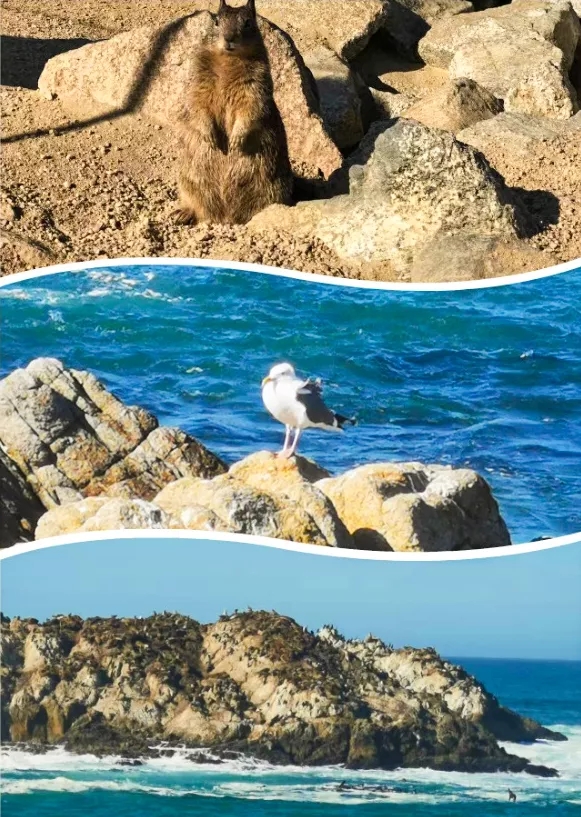 在鳥巖(Bird Rock),有成群的海鷗在飛翔或站立在巖石上,岸邊有可愛的小松鼠從巖石中探出頭來,慵懶的海獅在遠(yuǎn)處小島上或曬著陽光,或在海水中相互嬉戲、或在遠(yuǎn)處向我們招手……
