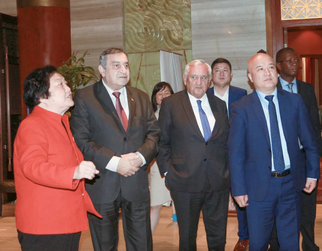 巴基斯坦外交部部長馬克杜姆沙阿·邁赫穆德·庫雷希先生與聯(lián)合國前副秘書長,中巴友好協(xié)會會長沙祖康、藍迪國際智庫專家委員會主席趙白鴿友好交流