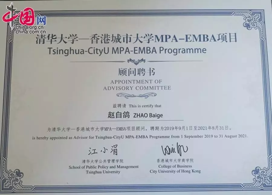 圖為趙白鴿博士獲聘清華大學-香港城市大學MPA-EMBA項目顧問