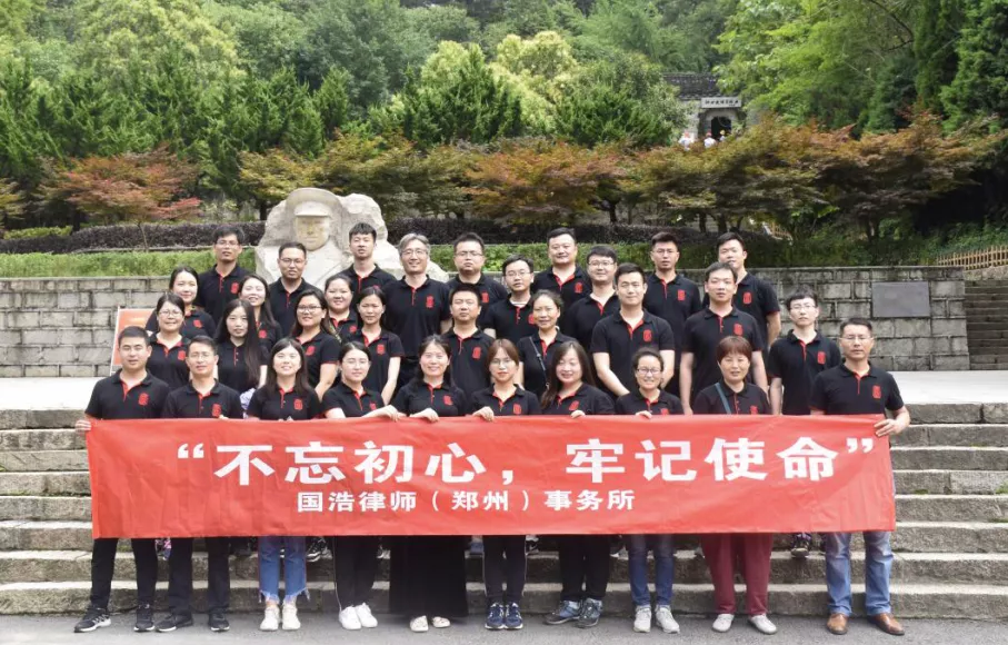6月29日至30日,國(guó)浩鄭州黨支部組織黨員律師和其他執(zhí)業(yè)律師、實(shí)習(xí)律師、律師助理及行政人員等30余人赴信陽(yáng)市新縣大別山革命根據(jù)地開展了為期兩天的“不忘初心,牢記使命”主題黨建活動(dòng),重溫革命歷史,緬懷革命先烈。