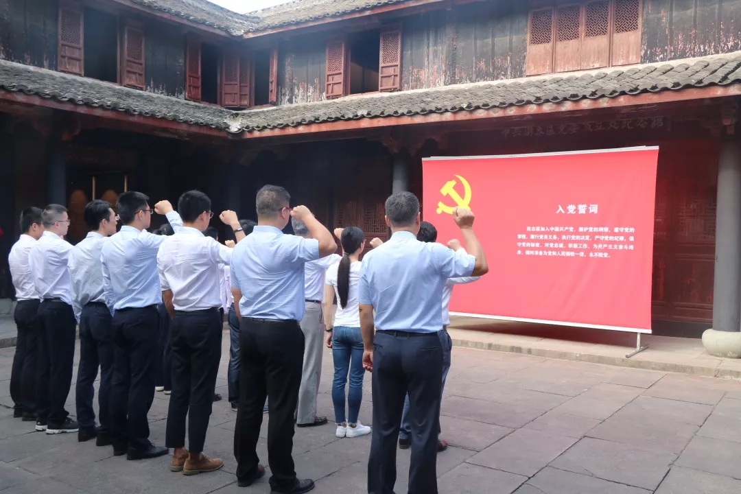 隨后,在中共浙東區委成立舊址紀念館前,全體黨員一起學習了《寧波市律師行業“不忘初心、牢記使命”主題教育實施方案》,明確了主題教育活動的要求及工作內容。在國浩寧波管理合伙人、主任、黨支部書記徐衍修和靖霖寧波黨支部書記余光升的引領下,重溫入黨誓詞:“我志愿加入中國共產黨,擁護黨的綱領……”聲聲入耳、字字入心,回顧入黨初心,堅定理想信念。