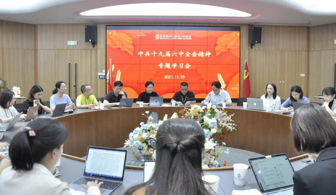 11月22日,國浩蘇州黨支部在國浩蘇州湖景會議室組織召開了“黨的十九屆六中全會精神集中學習會”。國浩蘇州管理合伙人、主任、黨支部書記葛霞青主持了會議,國浩蘇州黨支部宣傳委員王麗淋等30名國浩蘇州黨員參加了學習,用全會精神凝聚人心、增進共識。