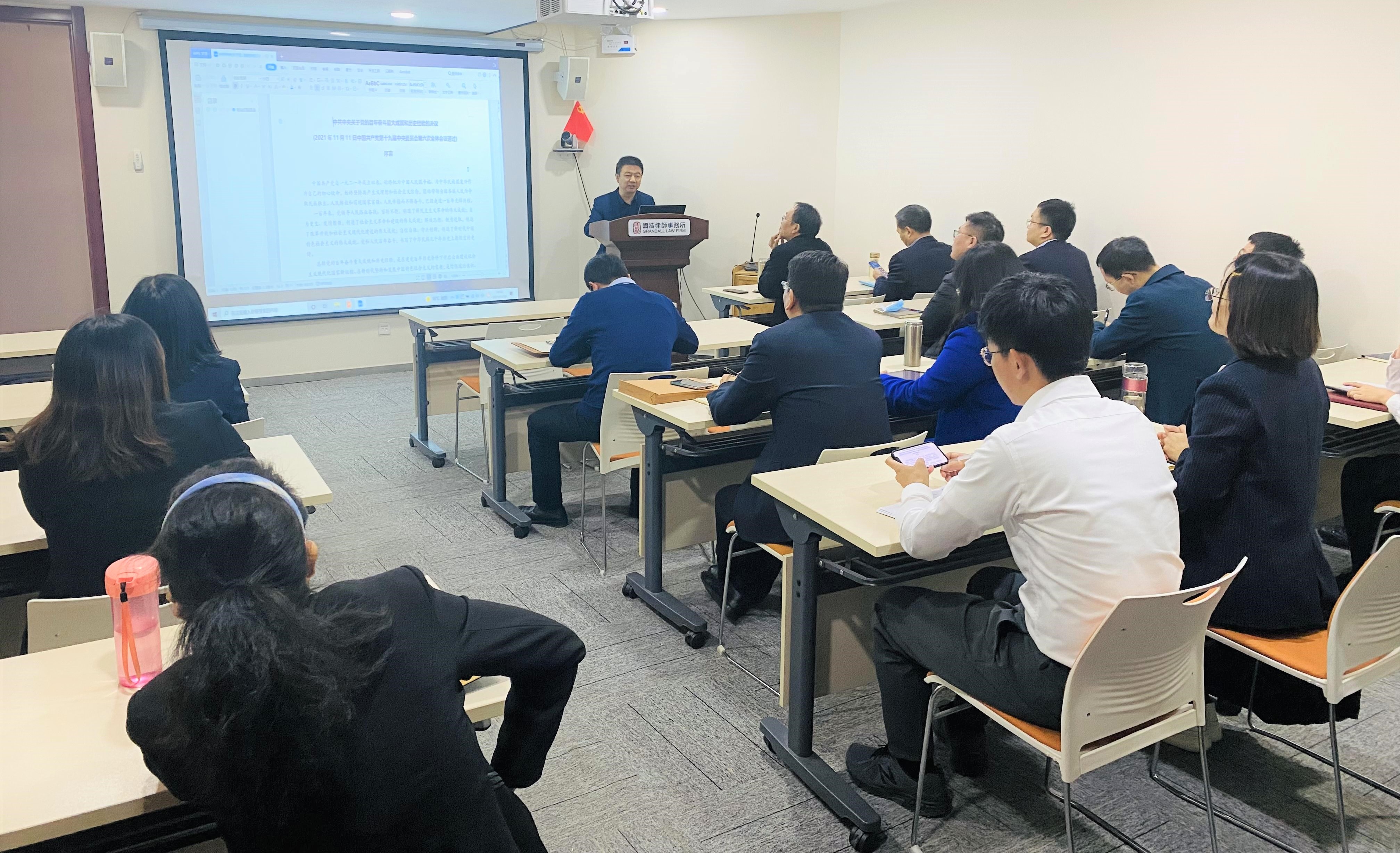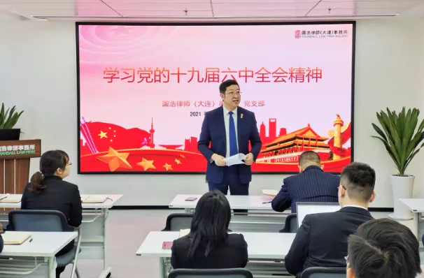11月26日,國浩大連黨支部組織國浩大連全體黨員律師、入黨積極分子集中觀看中共中央就黨的十九屆六中全會精神舉行的新聞發布會,深入學習習近平總書記就《中共中央關于黨的百年奮斗重大成就和歷史經驗的決議》的重要講話精神。