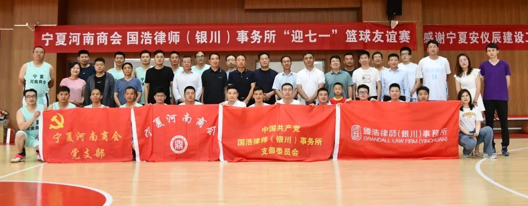 此前,6月26日上午,國浩銀川辦公室、國浩銀川黨支部還聯合共青團河南省委駐寧夏工作委員會、寧夏河南商會及商會黨支部深化拓展結對共建,共同開展籃球友誼賽主題活動。經過激烈角逐,國浩銀川隊以62:54贏得比賽。